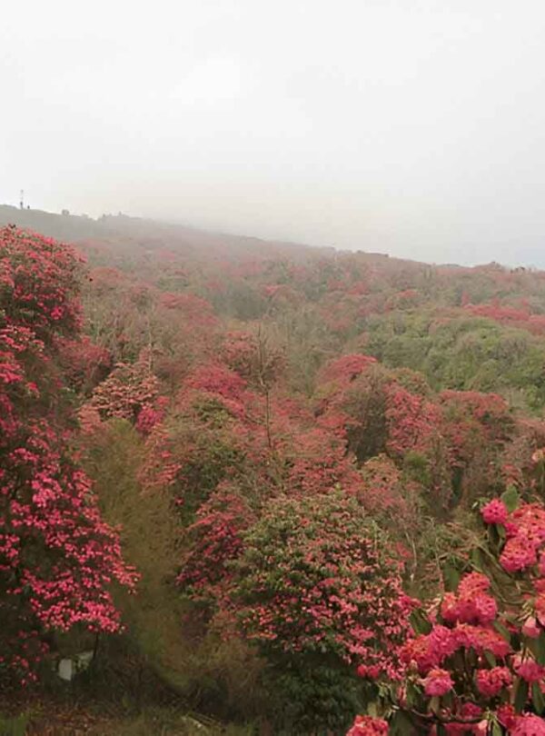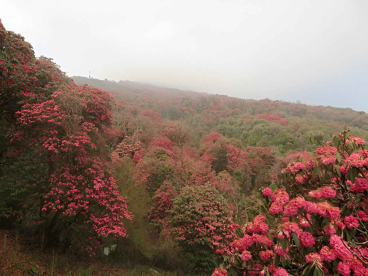 - Rhododendron forests, waterfalls, and river gorges on the lower trail.