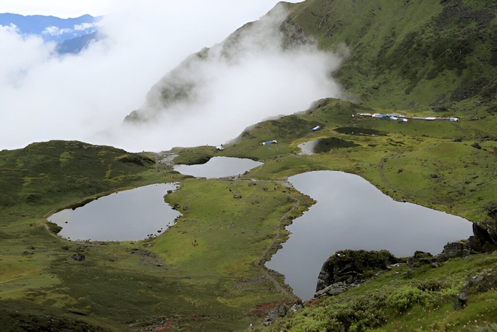 • Summit morning at Panch Pokhari (4,100 m) with five sapphire lakes and mountain panoramas.